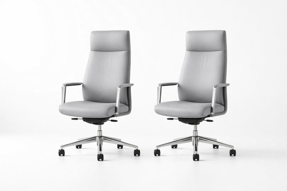 Bürostuhl Set Hochlehner Metall Kunstleder Grau