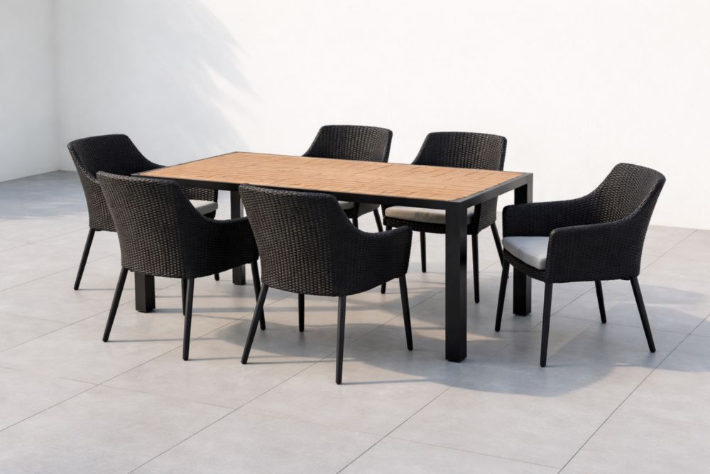 Garten Essgruppe 7-teilig Rattan Aluminium Schwarz